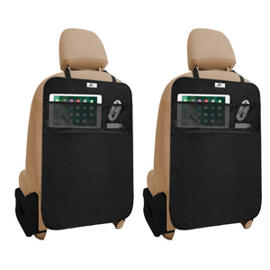 Worried about your pristine car seats getting dirty, kicked, and scuffed? Kick back and relax with our Gorla Gear heavy duty, waterproof kick mats protecting your car seat's leather or fabric upholstery. Our TWO PACK Gorla Gear kick mats are ideal for moms and dads, rideshare drivers, and the everyday driver that wants to protect their vehicle from dirt, grim, and scuff marks. Made with 600D oxford material, our elegant-looking kick mats provide a barrier between the backs of the front seats and kids’, teens’, and adults’ filthy shoes! While inferior kick mats are flimsy and weak, our integrated support backing provides rigid support and prevents load sag. The UNIVERSAL FIT for most automobile seats with an adjustable headrest buckle strap and upgraded elastic cord hook straps. ORGANIZE and store your belongings in style, especially on those long commutes or road trips. With their premium construction and designer style, the Gorla Gear Kick Mats look great in any automobile, whether it’s a truck, SUV, convertible, vintage car, minivan, luxury ride, or sports car. It has an ELEGANT LOOK without the tackiness of other kick mats on the market today. Cruise in confidence with our pet-friendly and kid and baby friendly kick mats. Click “ADD TO CART” to buy now!
